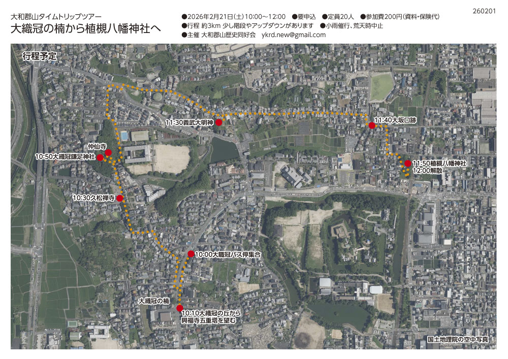 大和郡山歴史同好会は、2026年2月21日(土)大和郡山タイムトリップマップを使った徒歩観光「大織冠の楠から植槻八幡神社へ」を開催いたします。
