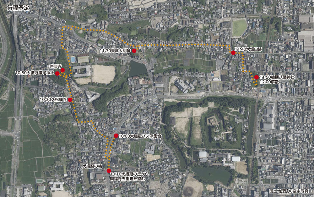 行程:10:00大職冠バス停集合→大織冠の楠→久松禅寺→大織冠鎌足神社→仲仙寺→義武大明神→大坂口跡→植槻八幡神社→12:00ころ現地解散